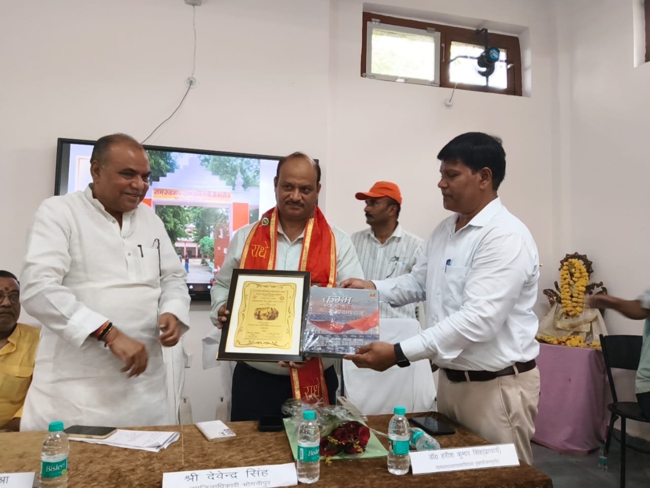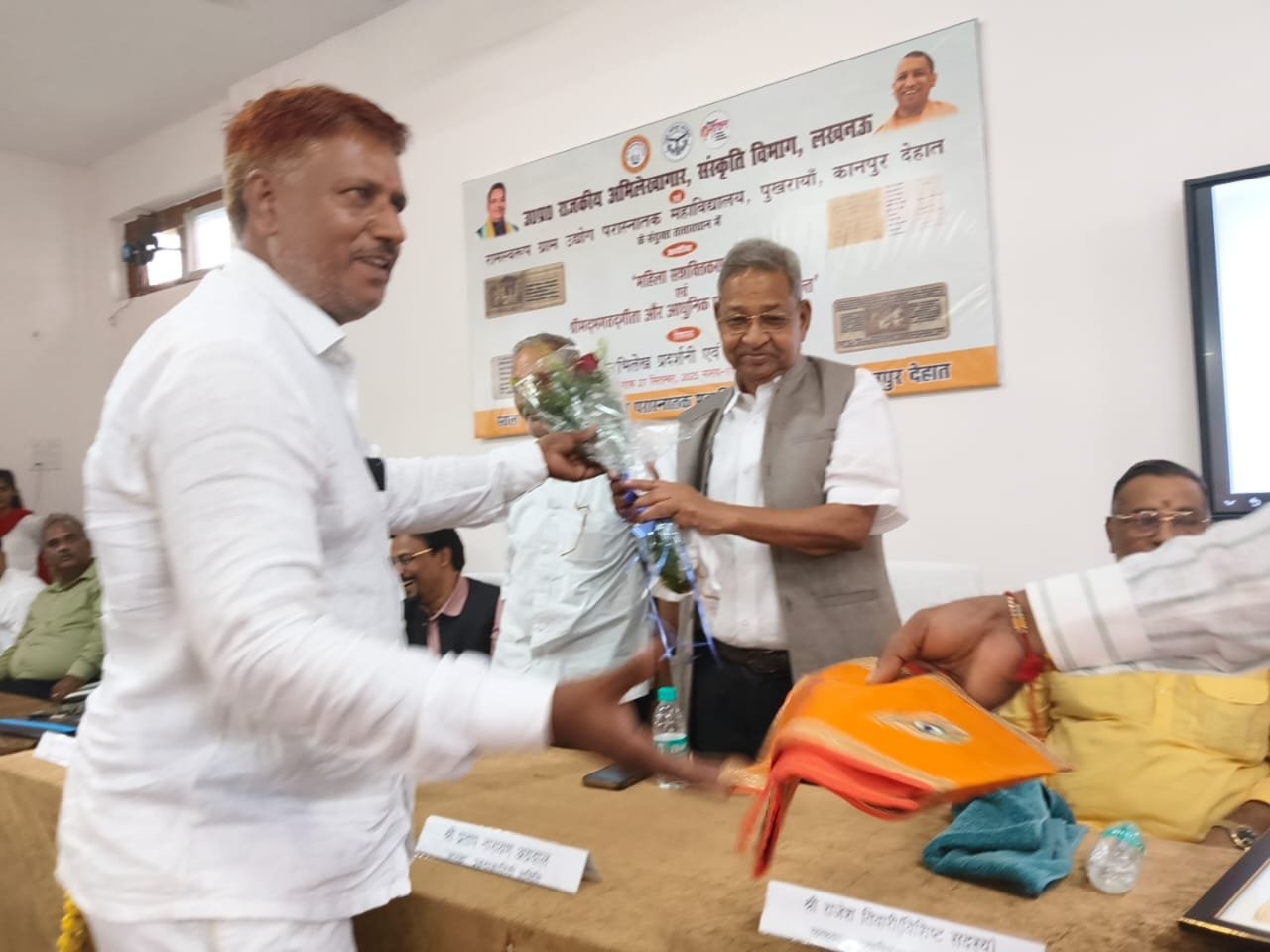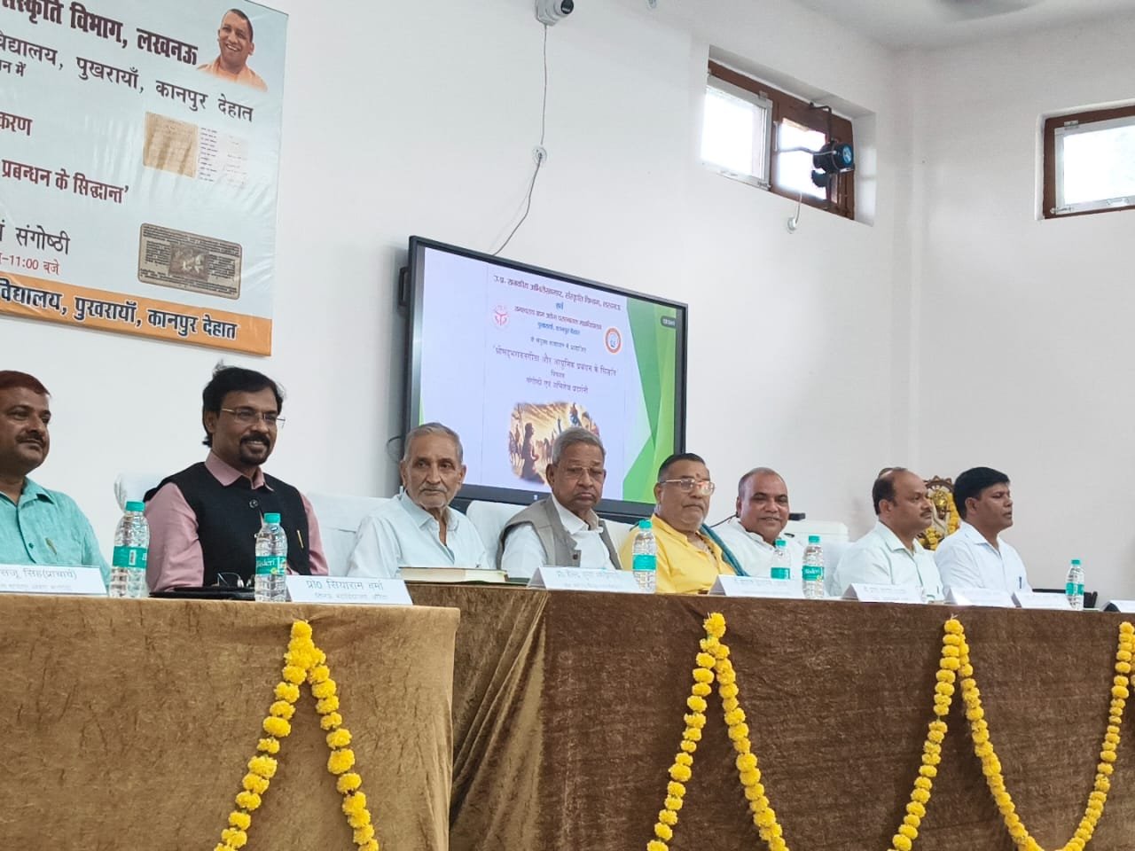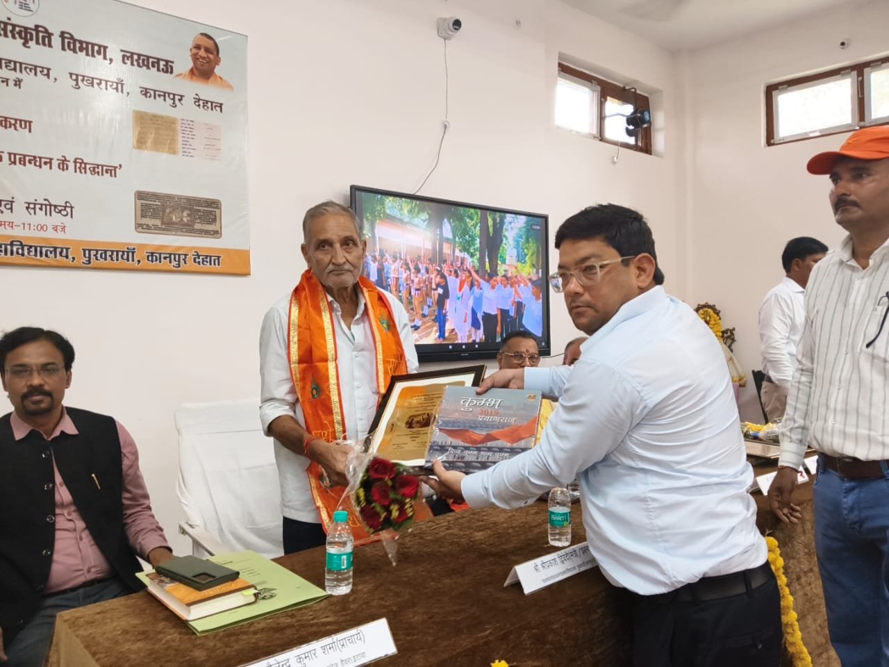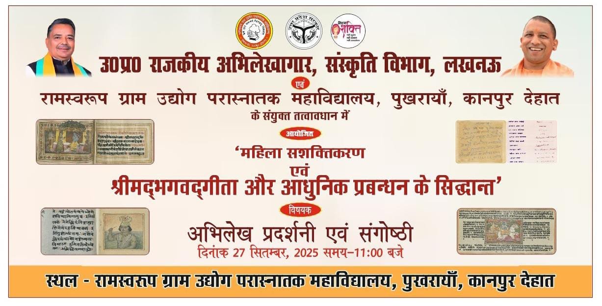 पुखरायां कानपुर देहात कस्बा के रामस्वरूप ग्राम उद्योग परास्नातक महाविद्यालय में आज उत्तर प्रदेश राजकीय अभिलेखागार एवं संस्कृति विभाग, लखनऊ तथा रामस्वरूप ग्राम उद्योग परास्नातक महाविद्यालय पुखरायां कानपुर देहात के तत्वाधान में अभिलेख प्रदर्शनी एवं "श्रीमद् भगवत गीता और आधुनिक प्रबंधन के सिद्धांत"विषयक संगोष्ठी का आयोजन किया गया। इसी के साथ महाविद्यालय के प्राचार्य डॉ हरीश कुमार सिंह द्वारा लिखित पुस्तक"प्राचीन ज्ञान परंपरा: एक सांस्कृतिक और बौद्धिक यात्रा"का विमोचन इस संगोष्ठी के अवसर पर किया गया। कार्यक्रम के मुख्य अतिथि उप जिलाधिकारी भोगनीपुर ,श्री देवेंद्र सिंह विशिष्ट अतिथि प्रो अनिल कुमार मिश्रा विभागाध्यक्ष इतिहास वीएसएसडी कॉलेज, कानपुर, मुख्य वक्ता प्रो शैलेंद्र कुमार शर्मा, प्राचार्य चौधरी चरण सिंह पीजी कॉलेज, हैंवरा इटावा, विशिष्ट वक्ता प्रो सियाराम तिलक महाविद्यालय, औरैया, प्रो संजू सिंह प्राचार्य राजकीय महाविद्यालय शहजादपुर कानपुर देहात, डॉ सुशील कुमार यादव असिस्टेंट प्रोफेसर राजकीय महाविद्यालय हमीरपुर, श्री रमेश सिंह शिक्षक (गीता विचारक) पटेल इंटर कॉलेज शेखपुर कानपुर देहात, श्री विजय कुमार श्रीवास्तव रहे।